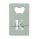 This simple, elegant sage green bottle opener with your first name in a trendy script font in black and your first initial in a modern cap font in white is perfect for you. It's stylish and trendy and yet very classic. Get a couple for your kitchen and bar.