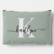 This simple, elegant sage green large accessory pouch with your first name in a trendy script font in black and your first initial in a modern cap font in white is perfect for you. It's stylish and trendy and yet very classic. It will be fabulous for school, the gym, work, your car - will make keeping your jewellery, makeup or toiletries all in one place when you're away from home.