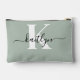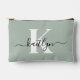 This simple, elegant sage green accessory pouch with your first name in a trendy script font in black and your first initial in a modern cap font in white is perfect for you. It's stylish and trendy and yet very classic. It will be fabulous for school, the gym, work, your car - will make keeping your jewellery, makeup or toiletries all in one place when you're away from home.