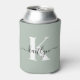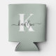 This simple, elegant sage green can cooler with your first name in a trendy script font in black and your first initial in a modern cap font in white is perfect for you. It's stylish and trendy and yet very classic. Get a bunch for when you're entertaining. Guests will be able to keep their drinks nice and cold.