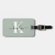 This simple, elegant sage green luggage tag with your first name in a trendy script font in black and your first initial in a modern cap font in white on one side and your name, address and phone number on the other would look fabulous on your suitcases. It's stylish and trendy and yet very classic.