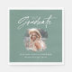 Modern minimal sage green script photo elegant graduation announcement party gift. Part of a modern collection.