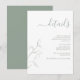 Introducing the Modern Sage Green Script Botanical Wedding Details Enclosure Card! This beautiful card is perfect for adding a personal touch to your wedding invitation suite. Designed to coordinate with wedding invitation in the same theme, the modern floral line art and elegant calligraphy make this card a stunning way to include all of the important information for your guests. You can even include your wedding website on the card for easy reference. The card holds up to 26 lines of text, so you can be sure to include everything you need. Whether you're looking for a way to add a personal touch to your wedding details or just want a beautiful and modern way to include all the important information, the Modern Sage Green Script Botanical Wedding Details Enclosure Card is perfect for you! Contact designer for matching products. View collection here: https://www.zazzle.com/collections/modern_sage_green_script_botanical_wedding-119270722625157382 Copyright Elegant Invites, all rights reserved.