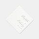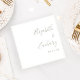 These simple, modern wedding napkins feature sage green text aligned to the right margin on a white background. Add the names of the bride and groom in stylish handwriting calligraphy.