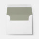 Keep the simple, modern sage green theme of your wedding invitation suite going with these matching RSVP return envelopes. Customise the back flap with the names of the bride and groom in sage green handwriting script and the address in sans serif font on a white background. The inside of the envelope is a matching shade of sage green.