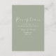 Minimal, elegant, modern, sage green wedding reception enclosure card with simple handwritten calligraphy script.