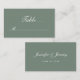 These modern sage green wedding place cards feature a simple white calligraphy script. Personalise the back of the cards with your names and wedding date. Best of wishes for your wedding and marriage! Designed by Susan Coffey.