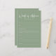 Shower your favourite mum-to-be with heartfelt wisdom and well-wishes on the "Modern Sage Oh Baby" Baby Shower Advice Card. This simple yet elegant advice card is the perfect way for guests to offer their best tips, encouragement, and blessings for the new parents. With its modern theme, it's a beautiful keepsake that will be cherished long after the baby shower ends. Whether it's for a first-time mum or seasoned parent, the "Modern Sage Oh Baby" card provides a thoughtful way for loved ones to share their wisdom and support during this exciting new chapter.
