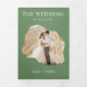 Modern Sage Wedding RSVP Details QR Code Photo Tri-Fold Invitation