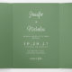 A sleek and modern all in one wedding invitation design featuring clean minimal typography in a sophisticated sage green colour. The layout incorporates three photos, RSVP options, event details, wedding website, and QR code for seamless accessibility, all adorned with trendy and modern calligraphy.