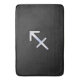 A silver chrome like Sagittarius zodiac symbol on a black snake skin style texture print background. A modern urban racy design for a great custom birthday gift idea.