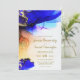 This is the gold font version of the same invitation. Stunning wedding invitation with translucent alcohol ink art. This wedding invitation is decorated with rich colours of ink in indigo, blue, purple, violet, orange, peach, and gold. Easily edit the template to your desired wedding details. Original art by international artist Pauline Benjes. See our collections for more of her beautiful abstracts on wedding invitations, home decor, and more. Modern Sapphire Blue Gold Orange Wedding Invitation.