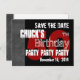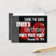 Here's a trendy save the date postcard in black and white with accents of red for a 50th birthday party. Fun! All text is customisable.