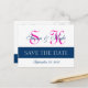 Modern Save the Date Navy Blue, Fuchsia (F400A1) Announcement Postcard