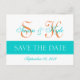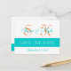 Modern Save the Date Teal Orange Double Monogram Announcement Postcard