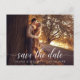 Handwritten Wedding Save the Date Cards that have a photo on the front and back. The Save the Date Fall, Autumn, Winter, Spring or Summer cards contain a modern hand lettered cursive script typography that are elegant, simple and modern to use after you minimalist simple wedding day celebration.