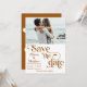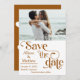 Announce your special day in style with our elegant Save the Date invitation featuring modern calligraphy and a personalised photo space. This beautifully designed card blends sophisticated, contemporary typography with a touch of personalisation, making it the perfect way to share the excitement of your upcoming wedding. The luxurious calligraphy exudes elegance, while the photo placeholder allows you to showcase a cherished image of the happy couple. Ideal for setting the tone of your wedding, this Save the Date card is a stunning keepsake that your guests will adore. Create lasting memories and build anticipation for your big day with this stylish and customisable invitation.