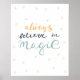 Decorate your precious little one's nursery with this adorable always believe in magic on a light blue starry background typography poster. © Julie McIver
