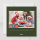A modern scandi family photo christmas card. This holiday greeting card features a scandi christmas tree theme with a minimalist text font. All text can be customised on the front and back of the card. Replace the photo on the back of the card with any photo of your choice.
