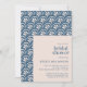 This modern botanical bridal shower invitation features a minimalist composition and simple typography in blue and white with a stylish floral pattern.