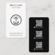 A modern and minimal black and white business card template that can be customised to your business name, text, business logo, digital contact details and 3 scannable QR Codes. Customise each QR code to your social media links, websites, online stores etc. Ideal for businesses that are contactable only online and would like to a scannable digital contact business card.