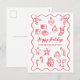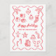 Modern Scribble Illustration Doodle Red and White Holiday Postcard
