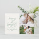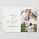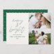 Modern script 1 photo merry & bright Christmas card. Modern green polka dot backer.