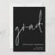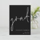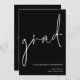 Modern Script 2025 Black Graduation. This simple monochrome design to announce the news of your graduate has informal set handwriting style script for the main header, grad, and easy to personalise typography to the bottom right hand side with your details and also your message on the back.