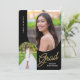 A modern script graduation announcement featuring 2 photos with arched edges and elegant script text. Custom text, on the reverse side, allows you to personalise with your grad announcement details.