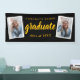 A fun way to show your pride for your graduate. Use photo banners at your events or as yard decor. This bold graduation banner features 2 photo apertures with large graduate type in centre and the name of the graduate and graduation year. Background colour is completely customisable as well as all fonts.