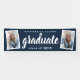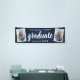 A fun way to show your pride for your graduate. Use photo banners at your events or as yard decor. This bold graduation banner features 2 photo apertures with large graduate type in centre and the name of the graduate and graduation year. Background colour is completely customisable as well as all fonts.