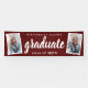 A fun way to show your pride for your graduate. Use photo banners at your events or as yard decor. This bold graduation banner features 2 photo apertures with large graduate type in centre and the name of the graduate and graduation year. Background colour is completely customisable as well as all fonts.
