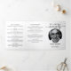 This professionally printed black and white funeral tri-fold brochure offers a refined and heartfelt tribute for memorial and celebration of life services. Designed with a timeless aesthetic, the layout features elegant serif and handwritten script fonts, spacious sections for a detailed obituary, acknowledgement messages, order of service, and a beloved poem. The front panel displays a circular photo area framed with the phrase “In Loving Memory,” adding a personal and respectful touch. Inside, the layout flows clearly, allowing room for personal stories, names, and messages, all presented in a way that honours the legacy of the departed. The clean black and white colour palette ensures it suits any memorial style—religious or secular, traditional or modern. Ideal for families seeking a dignified and customisable printed funeral program, this tri-fold design serves not only as a service guide but also as a treasured keepsake for guests. This elegant format brings comfort, clarity, and lasting remembrance to a meaningful farewell.