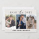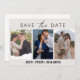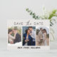 This modern script 3 photo templates save the date card is perfect for a minimalist wedding. The simple black and off white design features unique industrial lettering typography with modern style. Customisable in any colour. Keep the design minimal and elegant, as is, or personalise it by adding your own photo and text.