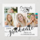 Modern photo collage graduation announcement featuring 3 photos on the front and 1 on the back with calligraphy script typography for the title GRADUATE accented with a graduation cap or mortarboard and personalised with your graduate's name and class year in black on an editable white background--select a different colour or choose from a variety of styled graphics backgrounds. The back includes details about your graduate. ASSISTANCE: For help with design modification/personalisation, colour changes, transferring the design to another product or if you would like coordinating items, contact the designer BEFORE ORDERING via Zazzle Chat or makeitaboutyoustore@gmail.com.