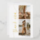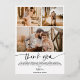Modern simple and elegant brush script with 5 photos collage grid wedding thank you black and white with real gold foil.