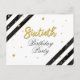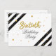 Modern Surprise 60th Birthday Script Gold Geometric Invitation featuring black stripes and gold foil glitter dots with script typography you can easily edit.