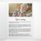 This beautifully designed memorial service program captures the essence of a life well-lived, offering a warm and personal tribute to a loved one. The front cover features a full-colour photograph of your loved one, accompanied by the phrase "In Loving Memory" in elegant script, along with your loved one's name and life dates, setting a tone of reverence and love. Inside, the program opens to reveal a collage of joyful photos, showcasing cherished memories that reflect the individual’s life and spirit. The program offers space for an obituary, detailed order of service, and a comforting poem or passage, providing solace and peace to those in attendance. This program is designed to be a meaningful keepsake, honouring the memory of a beloved individual with grace and dignity, while providing guidance and comfort to family and friends.