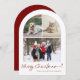 Send a chic holiday greeting with these flat Christmas cards featuring a stylish arch layout and a modern red and white photo collage. Minimalist script lettering and a small heart add a cute handwriting touch, giving the design a simple yet expressive feel. Personalized with your family photos and details, this contemporary card offers a sleek, elegant way to share your seasonal wishes.
