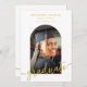 Celebrate your daughter’s high school, college, or university graduation with this chic and trendy gold script arch photo announcement card. Showcasing a modern arch design paired with sophisticated gold calligraphy, this personalised invitation is the ideal way to share her monumental achievement with friends and family. The casual yet elegant layout offers space for a beloved senior portrait or graduation photo, along with customisable event details in striking typography. Perfect for graduation parties, open houses, or formal announcements, this easy-to-edit photo card can be personalised quickly with the user-friendly template. Designed by artist Catherine Sweetman, this graceful arch invitation blends modern style with timeless appeal, making it a stunning keepsake to commemorate your daughter’s proud moment. Perfect for 2025 graduation announcements, senior photo cards, and custom graduation party invitations.