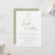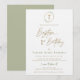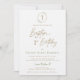 Modern Script Baptism and 1st Birthday Green Gold Invitation