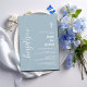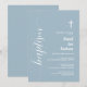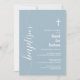 Modern Script Baptism White Cross Dusty Blue Invitation
