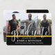 Share the joy of a high school or college graduation with custom 4 photo collage black and gold announcements. The pictures and all wording on this template are simple to personalise with any details of your choice, such as party invitation info, parents' names, special honours, degree title, favourite inspirational quote, graduate's contact info, or plans for the future. All colours can be customised with the Zazzle design tool. (IMAGE PLACEMENT TIP: An easy way to centre a photo exactly how you want is to crop it before uploading to the Zazzle website.) The black, white and gold stripe design features modern script calligraphy with a mortar board cap, elegant classic serif typography, and four photos of your choice, such as senior pictures or images from the commencement ceremony. Please note that gold is printed yellow colour, not metallic foil. Available as both printed and downloadable digital announcements, these modern graduation cards are a stylish way to share a special day celebration with family and friends. Congratulations to the graduate!