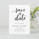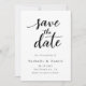 This elegant black-and-white wedding save-the-date card is perfect for a modern wedding. The simple design features elegant black calligraphy on a clean white background. The card also includes a QR code for the wedding website on the back.