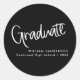 Modern script black and white graduation stickers.  These round stickers feature a modern trendy script with a black and white theme.  Customise the text with the graduates name and high school. Visit my black and white graduation collection to view all coordinating items.