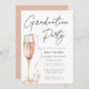 This is a minimalist and chic college/university graduation party invitation. It uses a handwritten script design in classic black and white with an elegant and celebratory flute of pink sparkling wine. Please contact the designer for any queries about this design.