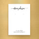 An elegant chic design with modern handwriting script for your custom name. A minimalist design with adjustable earring hole elements, and optional text. The reverse side of the card has custom business contact details with social media option. Further editing option on the product page.
