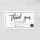 Modern minimalist simple black and white script brush handwritten style order thank you with discount code, perfect for your customers, add your logo and social media.