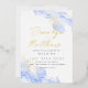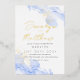 Modern stylish wedding card white and blue dash watercolor and modern calligraphy. Beautiful and elegant, simple and modern invitation.