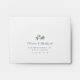 Elegant modern script and simple watercolor blue and white floral design, and sparkle faux blue glitter envelope liner, great for modern wedding, romantic wedding, and botanical garden wedding.